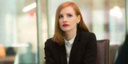 No entanto, é mesmo o cuidado com a construção da protagonista que faz Armas Na Mesa deixar de ser apenas um bom filme para se tornar uma obra memorável. Aceitando ir trabalhar numa agência menor não por ser uma defensora voraz da causa (embora ela seja a favor do controle de armas), mas sim pela dificuldade do desafio, Elizabeth Sloane se importa apenas com vencer, e, quanto mais obstáculos estiverem no caminho, mais prazerosa é a vitória. Inteligente, audaciosa e sempre com dois passos à frente dos adversários, ela não se importa de passar por cima dos outros para conseguir aquilo que deseja. Com roupas negras e os lábios e cabelos rubros, ela é, como a viúva negra, uma predadora insaciável e imparável.
