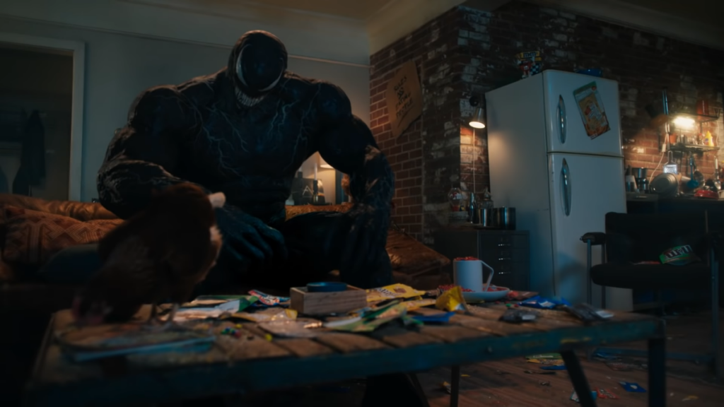 Porque se tudo com o simbionte no primeiro filme era uma questão de encontrar o hospedeiro perfeito para sobreviver, e no final de encontrar o caminho para sua felicidade individual compartilhando um corpo. Enquanto que o desafio de Venom para sobreviver aqui se torna menos sobre a utilidade do corpo de Eddie ou seu papel de anti-herói das ruas de San Francisco, e muito mais sobre encontrar conforto emocional um com o outro.