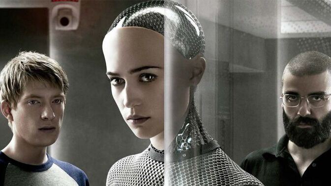 Este é o filme de estreia do diretor Alex Garland, que já havia cuidado de roteiros como O Extermínio, Sunshine, Não Me Abandone Jamais e o bem-sucedido reboot de Dredd, além de também ser o responsável pelo texto original de Ex Machina. E é admirável ver uma ficção científica tão desafiadora em sua temática. As sessões entre Caleb e Eva são fascinantes de se observar, graças à habilidade de Eva de demonstrar ideias e pensamentos tão complexos para uma máquina, e vê-la subvertendo os papéis com o programador humano é instigante. A revelação de que Eva tem instalada em si uma certa sexualidade é o aspecto mais interessante (“Como um mágico que usa uma assistente gostosa para distrair o público?”, questiona Caleb para Nathan), e o que move a relação entre Caleb e a máquina para algo mais complexo. Se Ela era de fato um romance que abusava do lirismo para ilustrar o afeto do homem pela máquina, Ex Machina é ficção científica na veia, sendo muito mais eficiente na forma com que lida com o tema.