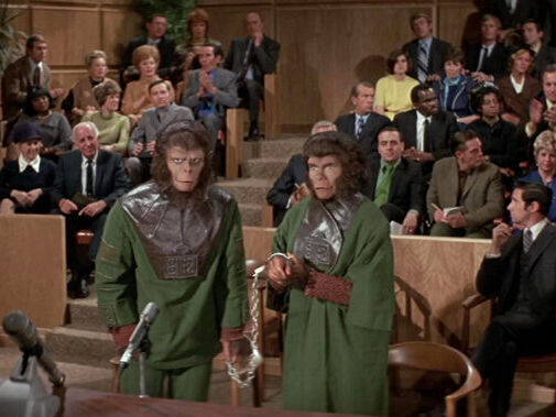 Então, mais para frente, Cornelius e Zira revelam para os cientistas e para o público, como eles sobreviveram à explosão da bomba que destruiu a Terra no futuro. É relatado que Dr. Millo havia aprendido como manusear a nave dos humanos, em algum momento durante o filme anterior, tornando possível que ele, Cornelius e Zira tenham embarcado nela e, estando no espaço durante a explosão da bomba atômica, conseguiram regressar no tempo, chegando até a presente linha temporal.