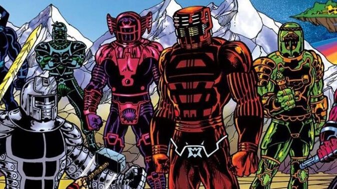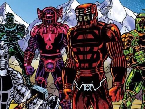 Eis que todos os Celestiais (Foto acima) junto com outras entidades cósmicas mais o Galactus aceitam a ideia de Adam Warlock de comandá-los rumo a luta contra o Louco de Titã e ao término, depois de muitas mortes e destruição (Thanos chega a arremessar planetas nas entidades) Thanos enfim é vencido e Adam recupera a manopla e as joias do Infinito. Isso tudo acontece na saga da Marvel Desafio Infinito.