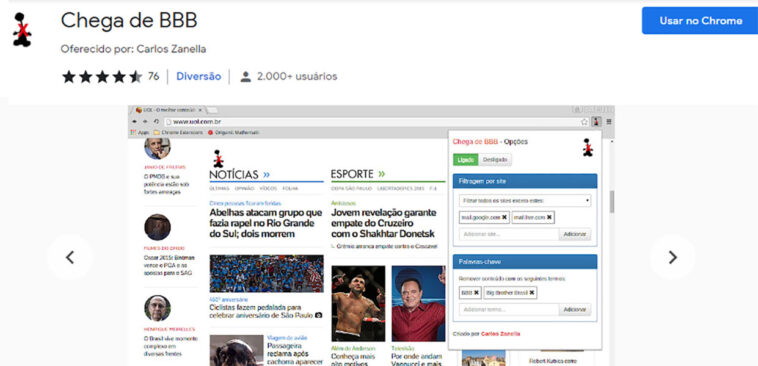 Se o usuário tem a vontade de fazer com que suma qualquer menção ao reality show, é só usar a extensão disponível no Google Chrome e assim acessar redes sociais e a internet com calma. A extensão faz com que desapareça todo o conteúdo que esteja relacionado ao BBB, até mesmo os resultados de pesquisas, buscando assim por palavras-chave (BBB, BBB 22).